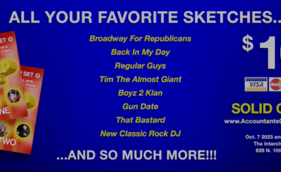 Solid Gold Hits Volume OneSaturday October 7, 2023, 7:30pm, $10The Interchange Theater Co-op628 N. 10th St, Milwaukee, WI 53233 GET ADVANCE TICKETS HERE Progressive political sketch comedy troupe The Accountants Of Homeland Security is a group of Chicago- and Milwaukee-based comedians with a 25-plus year history of producing sharp, timely, […]