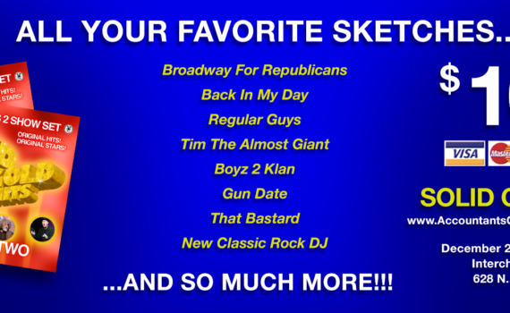 Solid Gold Hits Volume TwoSaturday December 2, 2023, 7:30pm, $10The Interchange Theater Co-op628 N. 10th St, Milwaukee, WI 53233 GET ADVANCE TICKETS HERE Progressive political sketch comedy troupe The Accountants Of Homeland Security is a group of Chicago- and Milwaukee-based comedians with a 25-plus year history of producing sharp, timely, critically […]